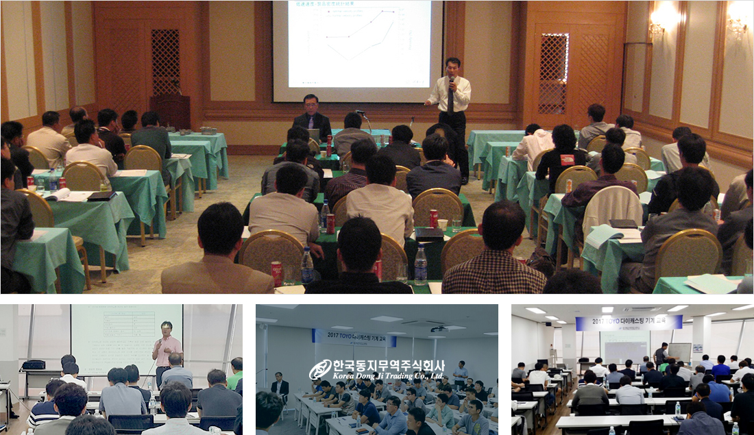 - TOYO, HISHINUMA의 다이캐스팅 기계뿐 아니라 주조시의 소착, 침식, 히트크랙 방지를 위한 금형 코팅기인 스파크 데포를 도입하여, 금형 수명 연장과, 불량 개선에 이바지 하였습니다. 그리고, 마그네슘용 급탕펌프 SYSTEM을 국산화 하여 국내 다이캐스팅 산업 성장에 기여를 거듭하였습니다.